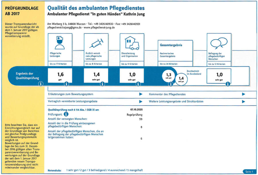 Unser Unternehmen besteht seit Oktober 2007. Wir beschäftigen Pflegefachkräfte, Krankenschwestern und Hauswirtschafter. Unsere Mitarbeiter führen die Pflege und Versorgung der Patienten und Kunden mit Liebe und Engagement durch. Wir haben uns die ganzheitliche Versorgung und Betreuung pflege- und hilfebedürftiger Menschen zum Ziel gesetzt, dabei streben wir nach größtmöglicher Kunden- und Patientenzufriedenheit.
